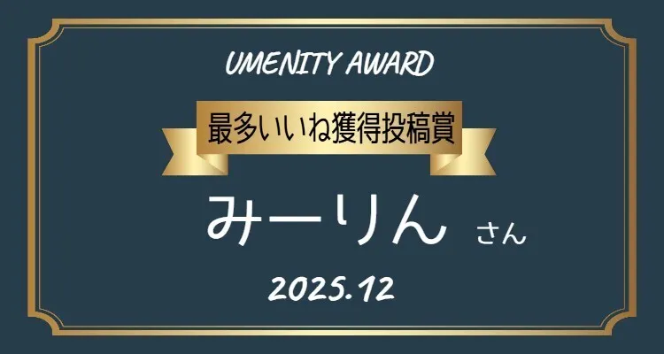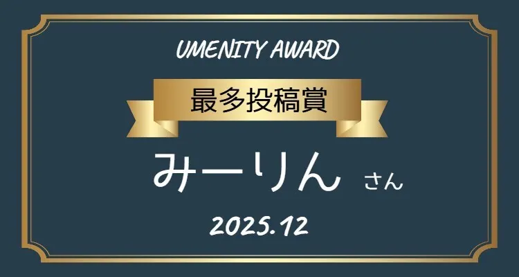 毎月10日は月間アワード発表の日ということで、2025年最後の12月度の『うめニティアワード』の発表です🎉🎊