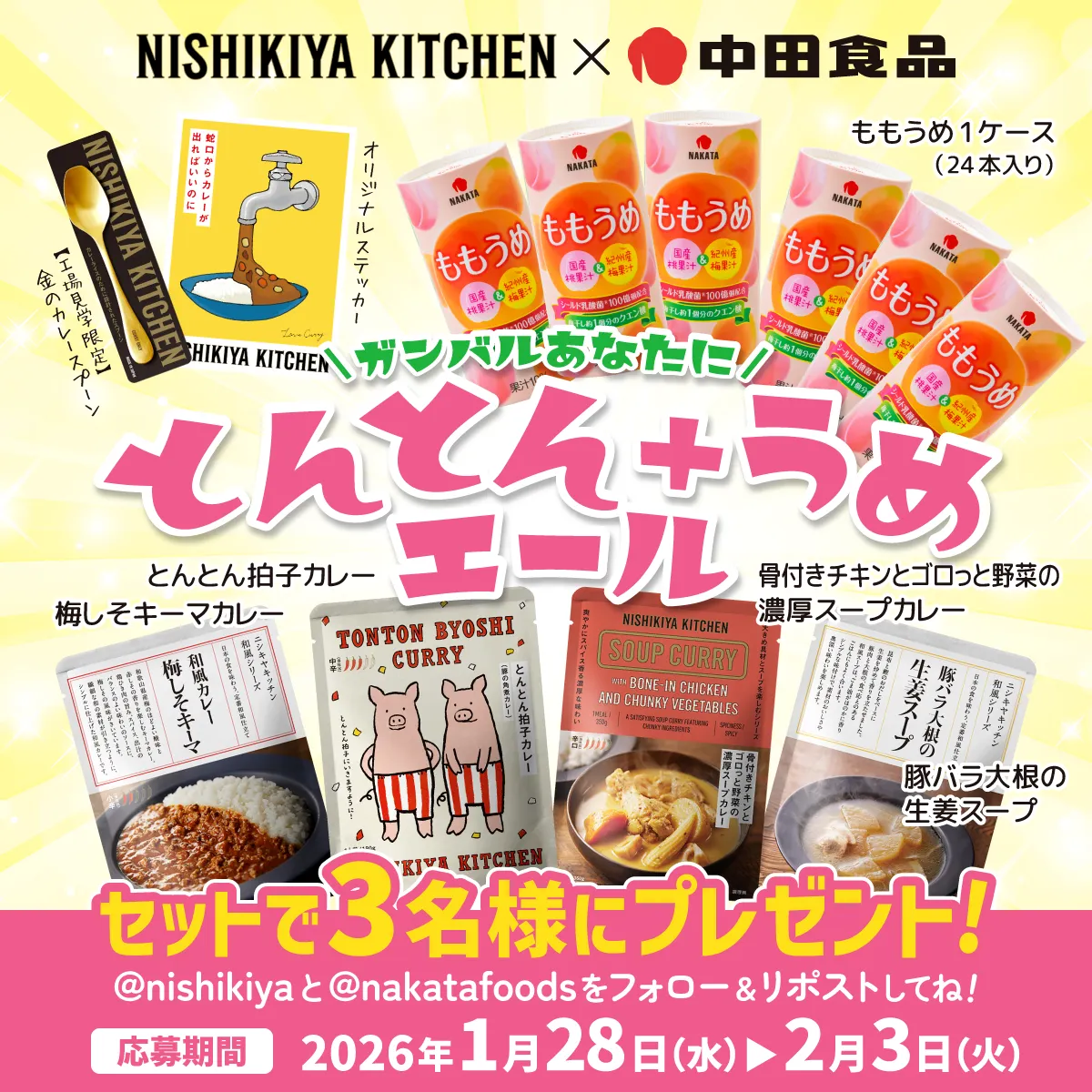 トップ > うめニュース > #キャンペーン > 【Xコラボキャンペーン】ニシキヤキッチン×中田商品 うめニティ運営スタッフ 2026/01/28 10:00 【Xコラボキャンペーン】ニシキヤキッチン×中田商品 がんばる毎日に、そっとエールを💌Xでニシキヤキッチンさんとのコラボキャンペーンが始まりました!コラボテーマは「がんばるあなたに"とんとん"+"うめ"エール」📣🥁頑張る人を応援する"とんとん拍子カレー"と、疲れをを癒す"梅"の力で、毎日を走り抜ける人をサポートします💪 いいね 共有する 共有する X facebook LINE リンクをコピー コメントする 3 件の返信 (新着順) ミュートしたユーザーの投稿です。 投稿を表示 翼が欲しい虎 2026/01/29 11:31 当たるとイイな いいね 返信する ミュートしたユーザーの投稿です。 投稿を表示 みーりん 2026/01/29 10:26 https://nakatafoods.coorum.jp/announcements/ei0donbslnij3z8s ももうめ 12月に投稿して気になっていますが スーパーやコンビニで売ってたら飲めるんだけどね🍑 いいね 返信する ミュートしたユーザーの投稿です。 投稿を表示 うさこっつ 2026/01/28 12:31 うわぁ〜✨いいなぁ✨ もちろん応募しまーす🙋🏻♀️🎯💫 いいね 返信する