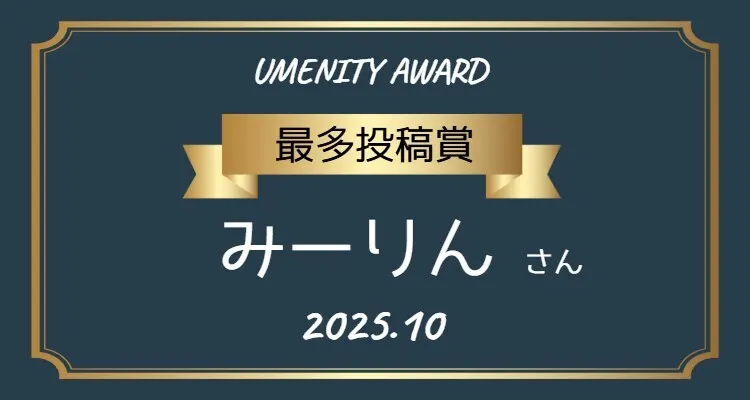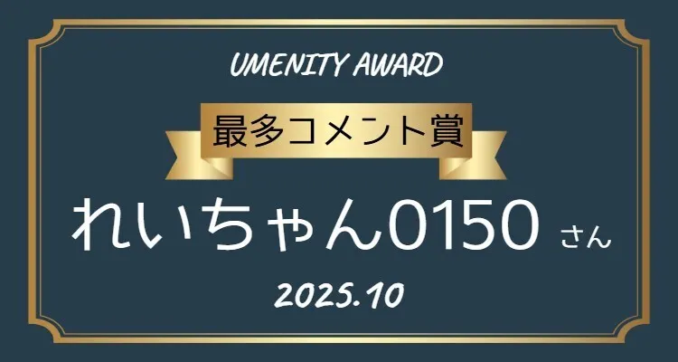 れいちゃん0150さんは、私たちうめニティ運営スタッフよりも早くメンバー様の投稿にコメントをしていただき、コミュニティを盛り上げていただきました!