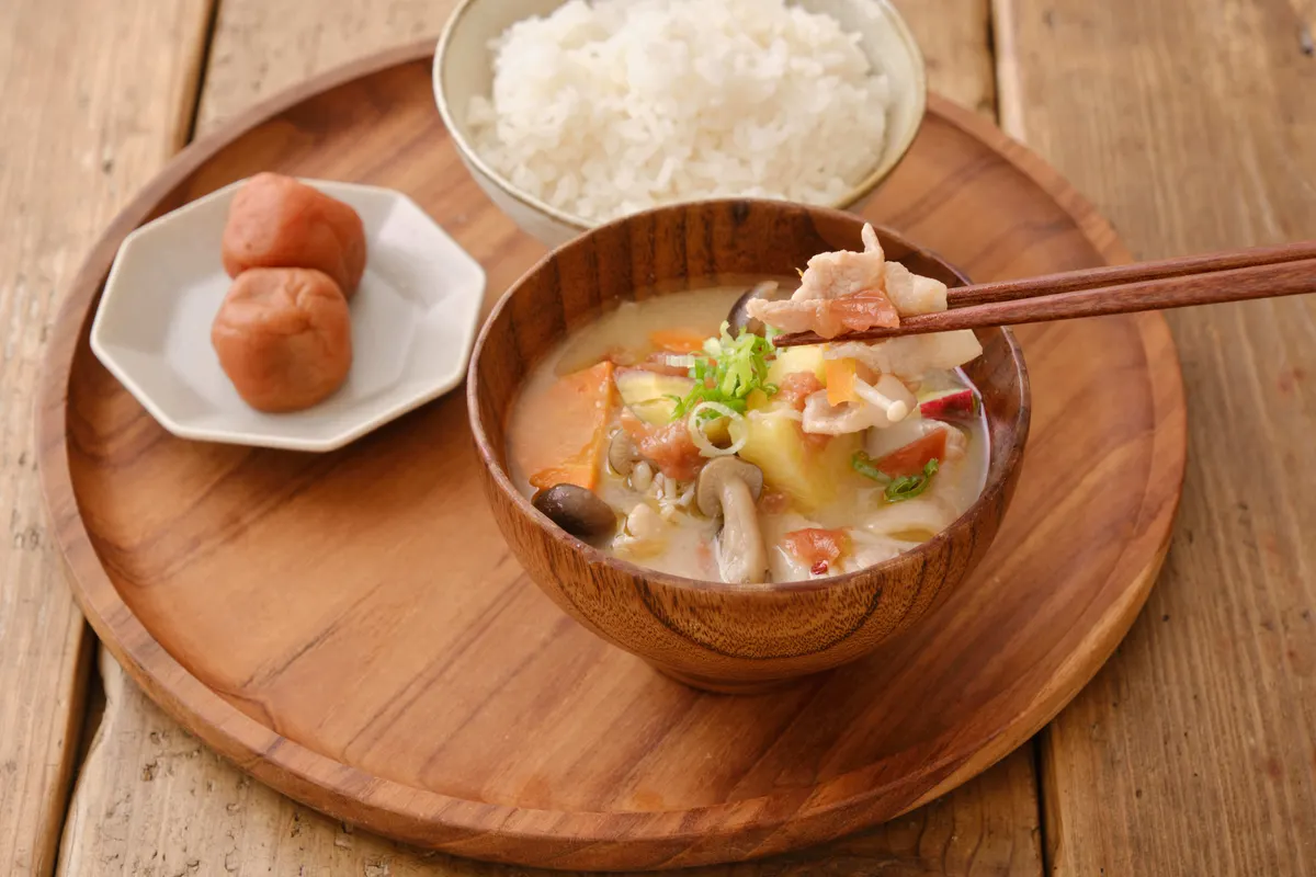 本日ご紹介するレシピは...「はちみつ梅入りの秋野菜豚汁」✨