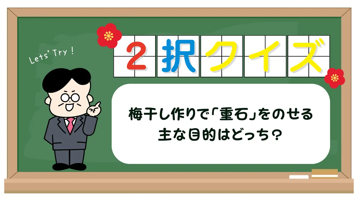 梅干し作りで「重石」をのせる主な目的はどっち?
